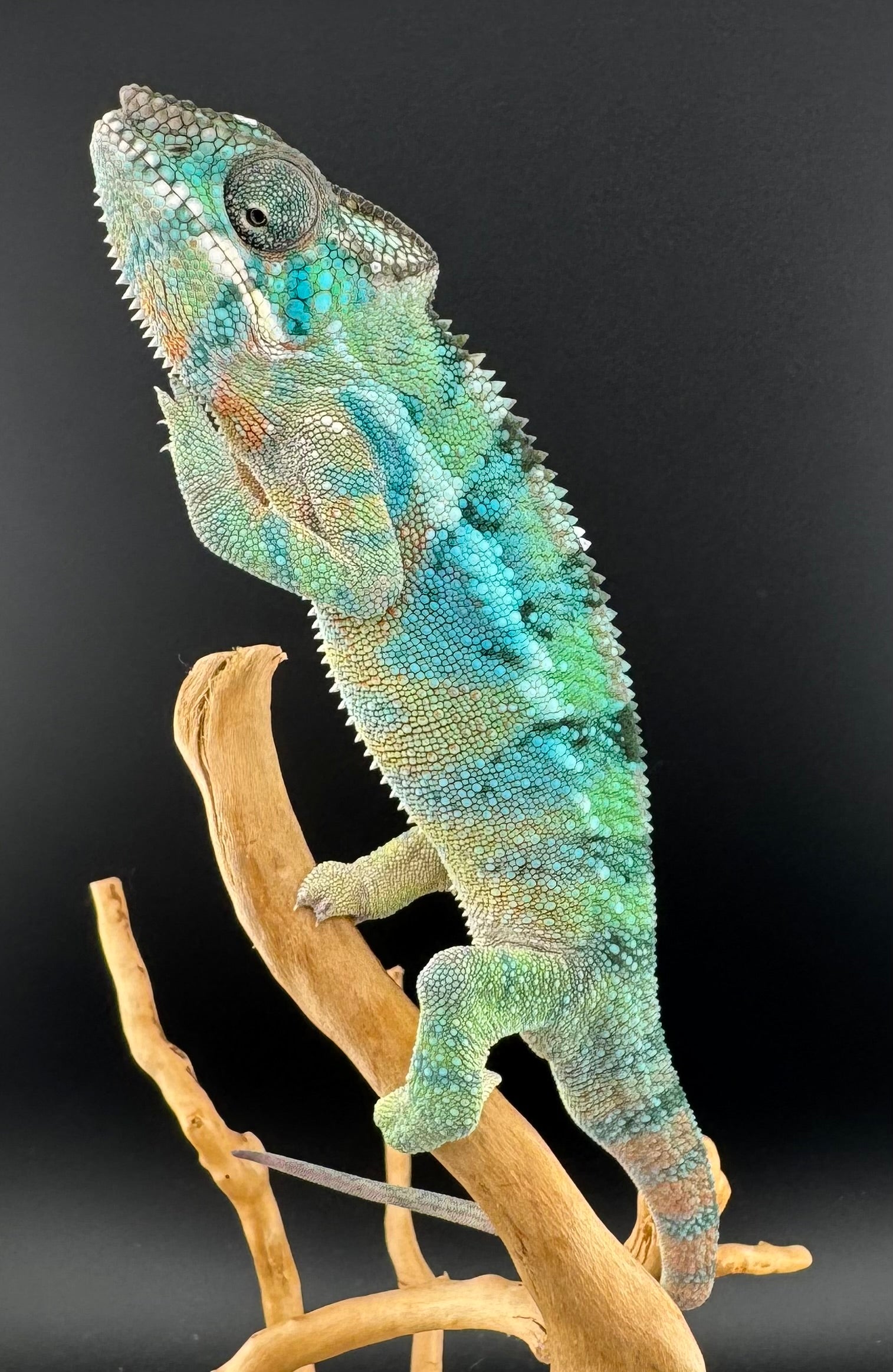 Well started male Ambilobe. Getting more color every day. Eating 1/2 crickets, dubias, SFL, silkworms. Price does NOT include overnight shipping. Overnight shipping is REQUIRED. With pickup at your local FedEx Hub required.